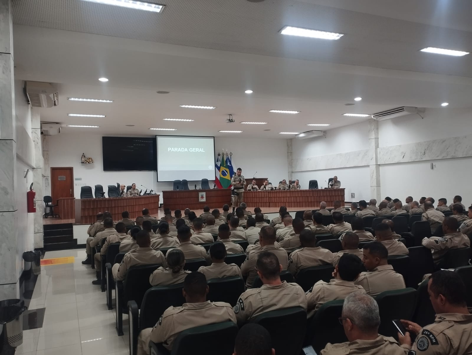 A Câmara Municipal de Candeias recebeu, nesta sexta-feira (10/10), a Parada Geral do 26º Batalhão da Polícia Militar, realizada sob o comando do Tenente-Coronel Antônio Ricardo de Assis Santos, com a presença do Subcomandante Major Pestana e do Capitão São Pedro. O encontro reuniu oficiais e praças da corporação para alinhamento de ações estratégicas e fortalecimento das diretrizes de segurança pública no município.